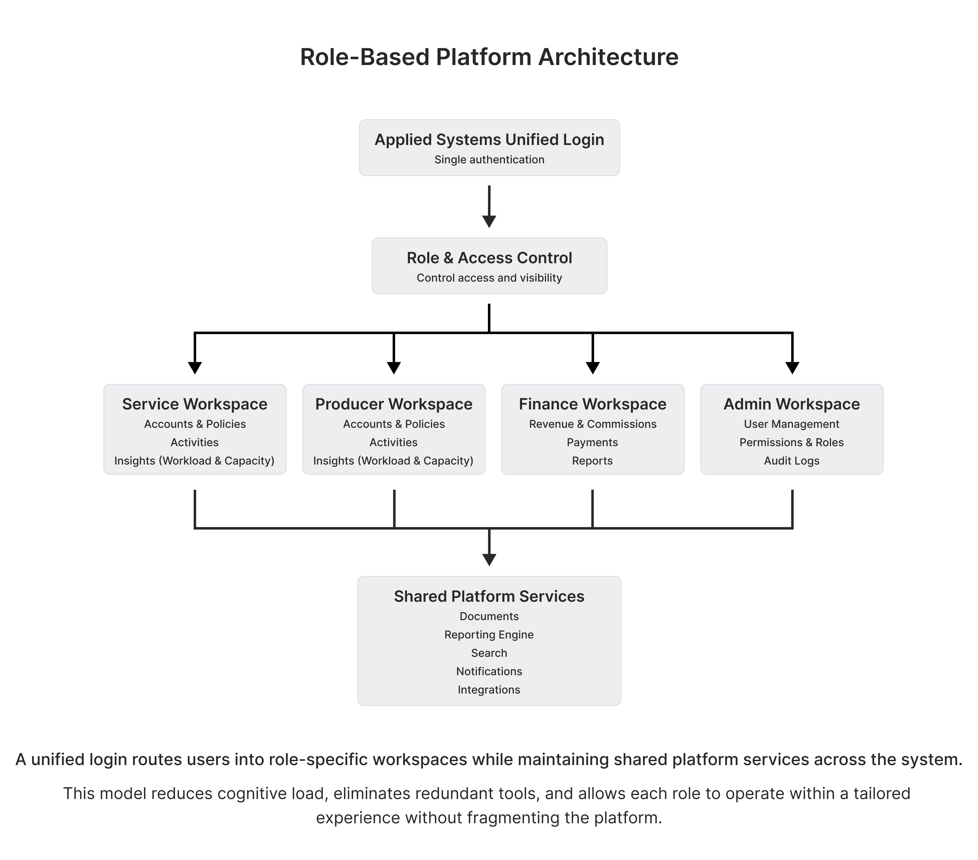 Applied Systems supports many different roles across insurance agencies, but those roles often enter the product through fragmented tools, apps, and dashboards. Users are expected to already know where to go, which product to open, and how their role fits into the system before they can even start working.